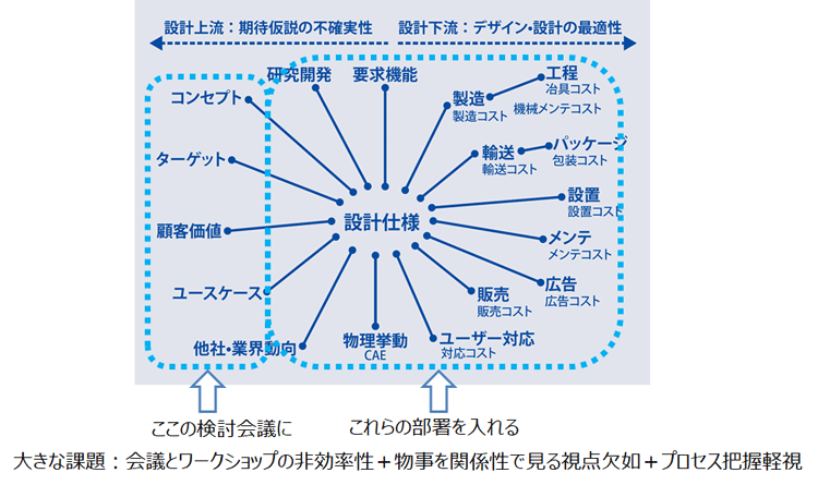 SIPプロジェクトで展示会出展していた時に、複数の企業人に言われました。「上流工程、構想設計の企画プロセスが大事なのはわかる。一番の問題は、そこに製造や輸送等の実施側の意見を入れるパスがないのが問題では?」と。構想設計コンソーシアムの議論でも「設置場所を確認していたはずだったのに、結局、入らずにドアを壊して設置する事になった」と。