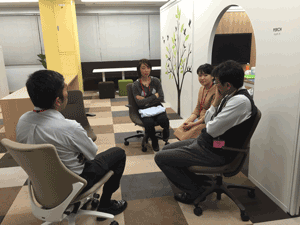 こちらからのインタビューは個別に訪問させていただいたので、企業の方々でのお顔合わせは初めてです。会社はそれぞれ別ですが、企業のデザイン部署という共通の立場を持っていらっしゃる方々との交流の場を作ってみました。