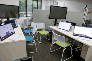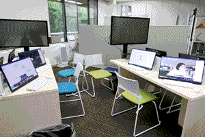 展示物では、DBMを実際に試用体験いただけるPCや、DBMの操作方法及びユースケースの動画、「Dollhouse VR」という名称の、チームで協調して空間デザインを行うシステムを公開しました。