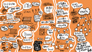 技術と社会のギャップを埋めるための共創のデザイン、共創のモデル化の可能性等、刺激的な内容に触れ、議論が盛り上がりました。一方で、メンバーも含めて、ワークショップの盛り上がりが一時的であり、バラ色の議論ばかりで詰むことも多いという課題も共有されました。