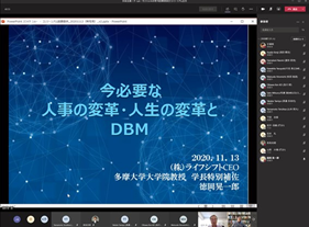 ユーザー会趣旨、DBM使い方入門、ユースケースイメージ、最後には、質疑応答及びご意見を伺う、という内容で行いました。