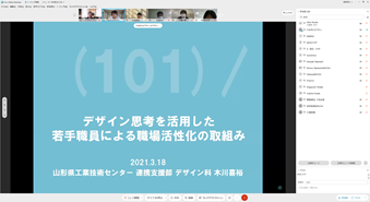 2025年3月の会合のゲストは、山形県工業技術センター大場智博氏です。デザイン思考やデザイン経営は知っていても、開発等で上手くいっていない、効果が感じられないという現状を踏まえて、デザイン的発想力というメンバー向けのアプローチを開発中であり、その方法論が地元企業にとどまらず、広く効果があるのではという意図で企画しました。
