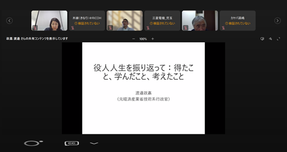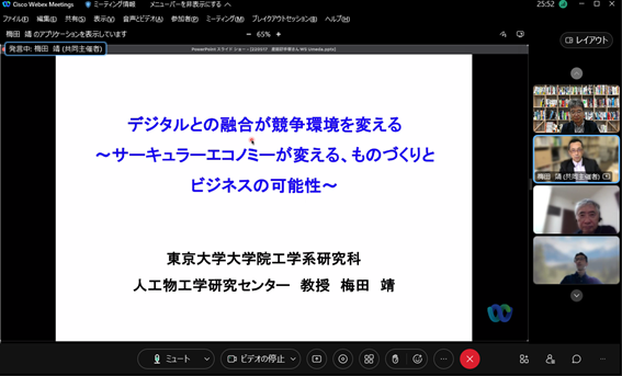 2025年8月の会合のゲストは、京都大学で超分野大喜利プロジェクトの代表者を務める京都大学生存圏研究所生存圏未来開拓研究センター センター長 桑島 修一郎氏です。