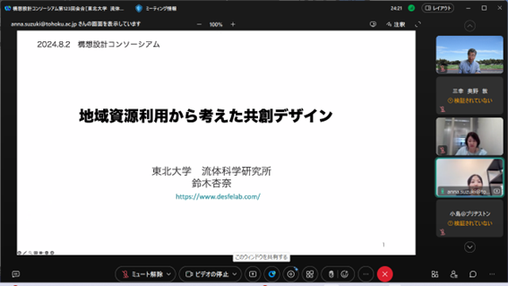 【構想設計コンソーシアム(CoDE)の活動】東北大学 流体科学研究所 流動創成研究部門 自然構造デザイン研究分野 准教授 鈴木杏奈氏にご講演と議論にご参加頂きました。