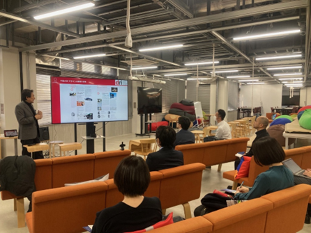 2024年12月の会合は、オンサイトでの開催とし、東京都区で唯一大学キャンパスがなかった墨田区にできた千葉大デザイン・リサーチ・インスティテュート(dri)の地元密着型の活動について、同センター長 植田 憲氏に地域密着型のデザイン活動についてのご講演と現地見学をお願いしました