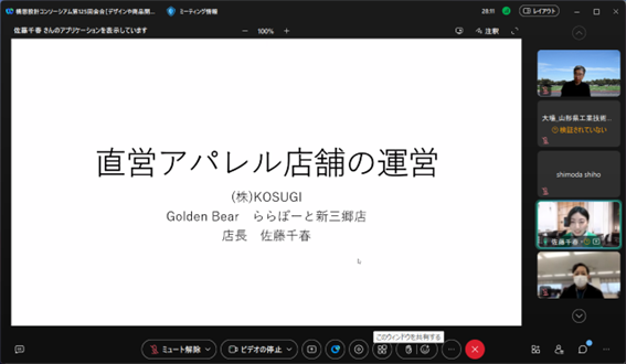 10月のコンソーシアム会合のゲストは、株式会社コスギ ゴールデンベア ららぽーと新三郷店 店長 佐藤千春氏です。店舗では顧客をどのように観察、接客し、陳列をどのように工夫しているか、デザインや商品開発との関係やフィードバックはどのようにしているか等、店舗目線での初めての会合となりました。