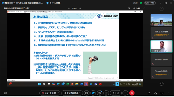 【構想設計コンソーシアム(CoDE)の活動】株式会社ブレインファーム サステナビリティコンサルタント 海﨑一洋氏にご講演と議論にご参加頂きました。