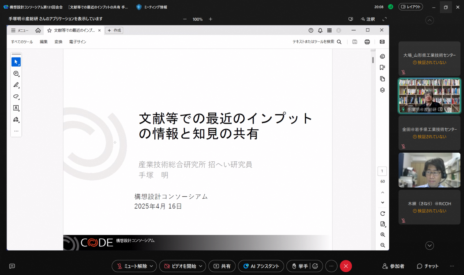 【構想設計コンソーシアム(CoDE)の活動】文献等での最近のインプットの情報と知見の共有(構想設計コンソーシアム会長 手塚明)