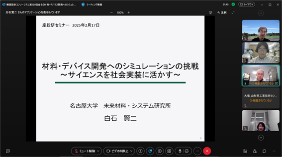 2025年2月の会合のゲストは、名古屋大学の未来材料・システム研究所で、量子力学に基づく第一原理計算を材料やデバイス開発につなげるように社会実装を仕込んできた白石賢二教授でした。