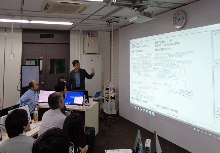 特に、課題はわかるが、どのように解決して良いかわからない、という段階から、ワークショップを経て、問題設定を行い、問題解決へのプロセスをチームで決定する、というような内容を得意としています。